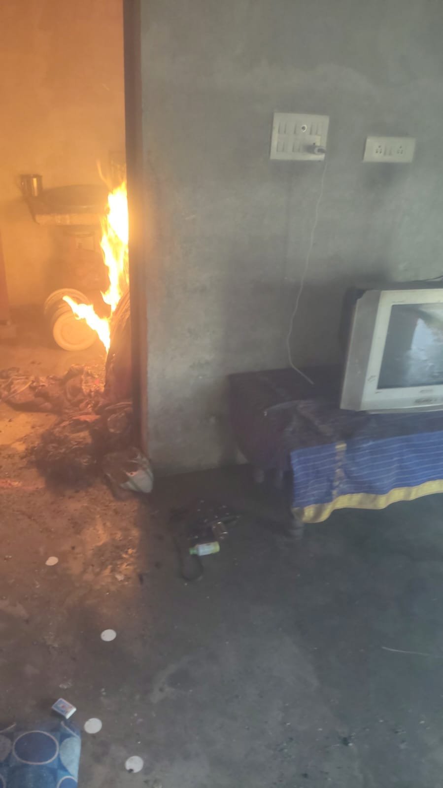 सिलेंडर में लगी भीषण आग, पुलिस और फायर टीम की सूझबूझ से टला बड़ा हादसा
