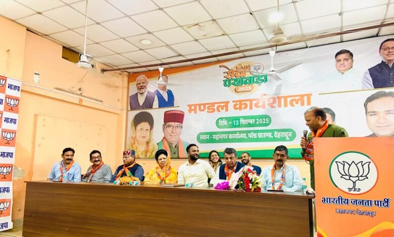 मसूरी विधानसभा में आयोजित कार्यशाला में मुख्य अतिथि कैबिनेट मंत्री गणेश जोशी ने कार्यकर्ताओं को संबोधित करते हुए कहा कि प्रधानमंत्री मोदी के नेतृत्व में देश सेवा, सुशासन और समाज कल्याण की भावना को जीवंत रूप देते हुए भाजपा हर वर्ष सेवा पखवाड़ा के माध्यम से जनसेवा का संदेश देती है। उन्होंने कहा कि प्रत्येक कार्यकर्ता को इस सेवा अभियान को जन-जन तक पहुंचाने में सक्रिय भूमिका निभानी होगी।