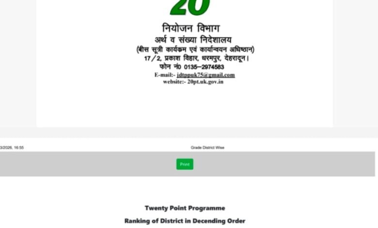 आज दिनांक 28 मार्च 2026 को बीस सूत्रीय कार्यक्रम क्रियान्वयन समिति के उपाध्यक्ष ज्योति प्रसाद गैरोला जी के द्वारा विभागीय प्रगति प्रतिवेदन का फरवरी2026 माह का कृर्मिक प्रतिवेदन जारी किया गया।