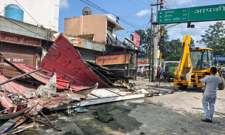 देहरादून: ट्रांसपोर्ट नगर में अतिक्रमण पर चला एमडीडीए और नगर निगम का बुलडोजर, 20 दुकानों से हटाया गया अवैध कब्जा