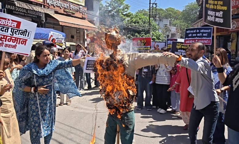 महिलाओं का कांग्रेस पर हमला, डीएवी कॉलेज चौक पर पुतला दहन